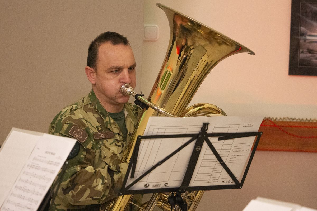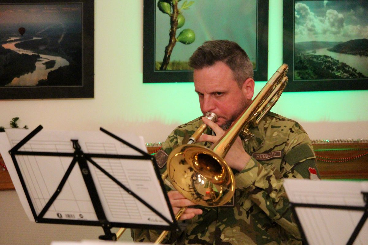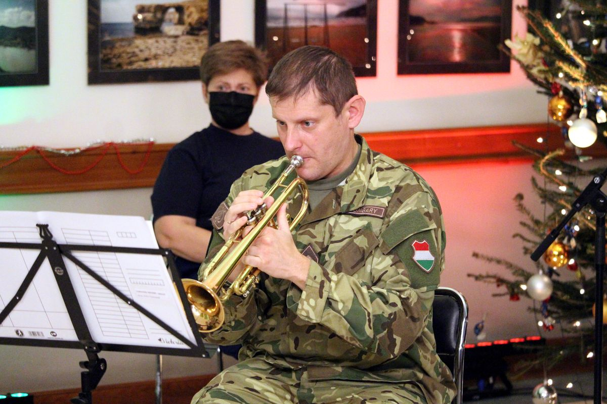 A zenekar nagy része jelenleg a Korányiban látja el feladatait. – kezdte érdeklődésemre Major András őrnagy, az MH BHD Központi Zenekar karmesterhelyettese. A mai rendezvény ötlete a kórház vezetésétől jött, ugyanis az évzáró eseményükbe tudott bekapcsolódni a zenekar egy szextettel (öt rézfúvós és egy ütős). Ez egy nagy összefogás, ami jellemző a 2020-as évre. A karácsonynak dupla ünnepnek kellene lennie, amiben az emberek sokkal jobban segítik egymást, az emberi kapcsolatoknak fel kell értékelődniük. A karácsonyi ünnepet orvosok, asszisztensek, ápolók, illetve betegek láthatták és hallhatták a kórház belső csatornáján keresztül. Az adventi ráhangolódás céllal tartott koncerten elhangzott a fanfár után Händel Vízizenéje, F. Gruber Csendes éj feldolgozása, végül pedig Leroy Anderson szánkózásával zárult.